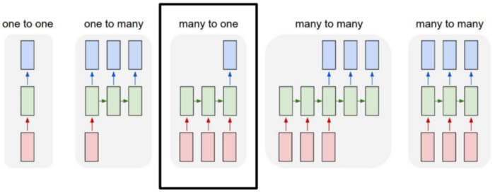 For this classification problem, we will use the many-to-one relationship model. The input are sequences of words, and the output is one single label, the accident severity.